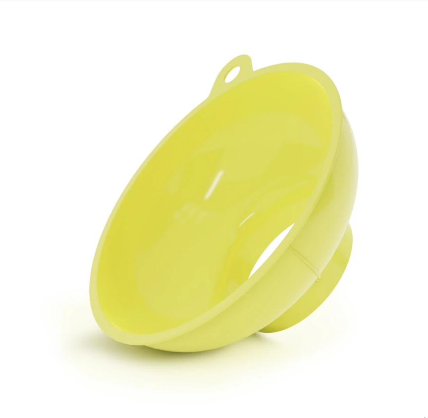 Данный вид воронки имеет широкое горло и кромку по краю в размере 1 см, что дает возможность переливать через такую воронку большой объем жидкости, не опасаясь, что жидкость может перелиться через края воронки.