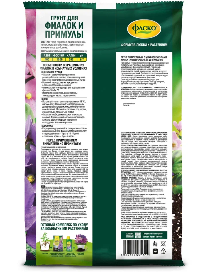 Грунт Фаско Фиалки 2,5л 1/15/750 (Ф+)