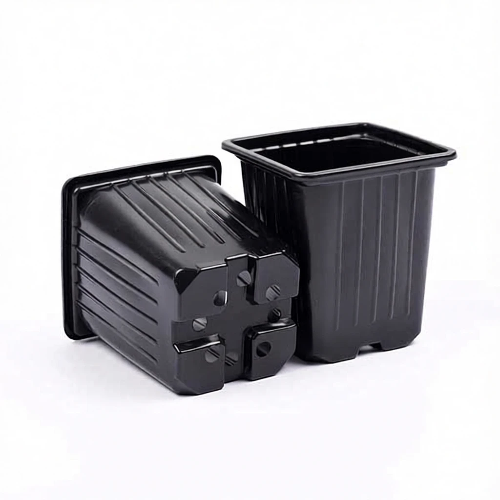 Имеют квадратную форму и размеры 9*9*8 см.,оснащены дренажными отверстиями, не позволяющими воде застаиваться в горшке. -