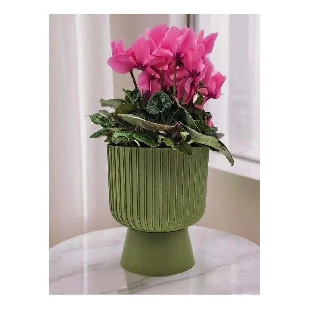 Кашпо выполнено в элегантной форме бокала на устойчивой ножке, что придаёт ему лёгкость и изысканность. Ключевые декоративные элементы:
