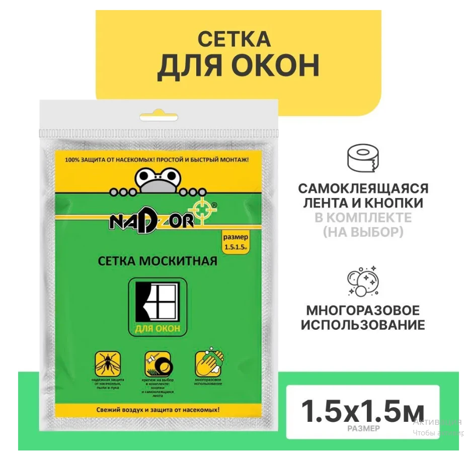 Сетка москитная с крепежом для оконных проемов 1,5м*1,5м белая. Подходит для любых оконных конструкций - легко обрезается под необходимый размер.