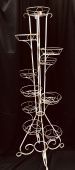 Высота - 1.8 м Ширина основания - 60 х 60 см Вес - 5.5 кг Серия металлических подставок под комнатные цветы на четырех опорах и с чашками расположенными по спирали. Количество чашек под растения в этой серии может составлять 4, 5 ,7 ,9 или 11. Высота от 1 метра до 1 метра 80 сантиметров.