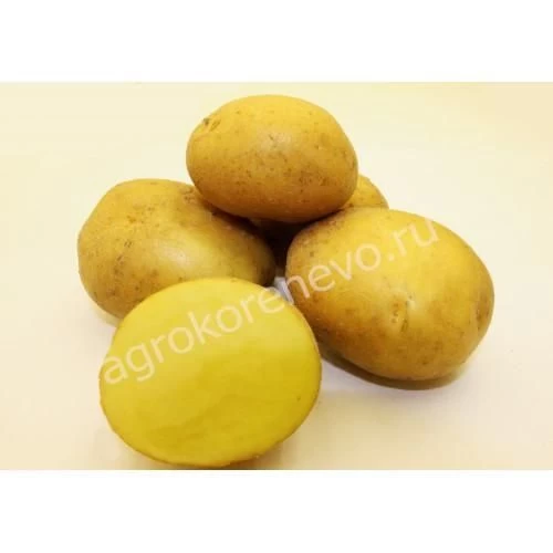 Кубень овальный с мелкими глазками. Кожура жёлтая. Мякоть светло-жёлтая.
