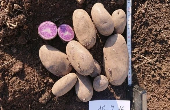 Клубень удлиненно-овальный с очень мелкими глазками.