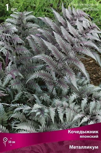 Кочедыжник японский - корневищный многолетник высотой 30-70 см. Листья высокодекоративные с металлическим блеском и красно-багряными тонами на стеблях. Произрастает в Корее, Японии, Вьетнаме и Китае Зимостоек.