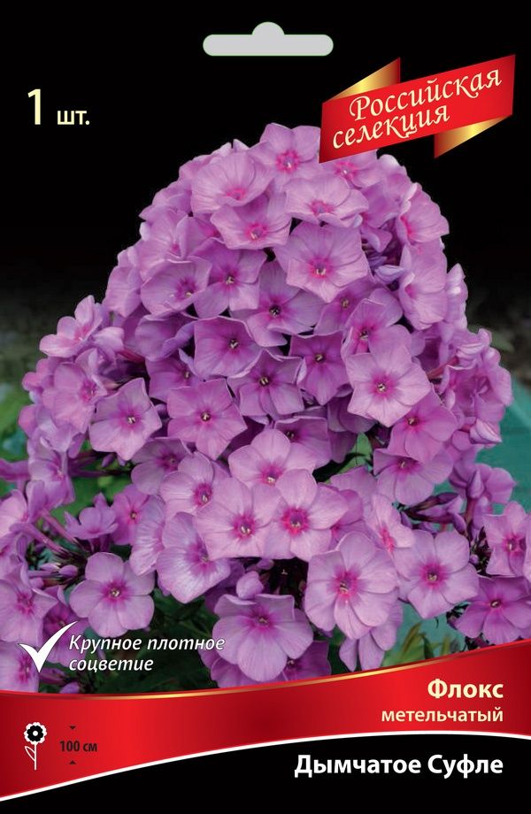 Дымчатое Суфле (авторы Корчагин, Борисова) - высота растения 100 см. Цветки сиренево-дымчатые с пурпурным центром. Соцветия округло-конические, плотные, устойчивые к дождю и ветру.