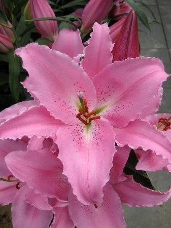 сиреневато-розовый с гофрированным краем, тёмно-розовый крап, 20см