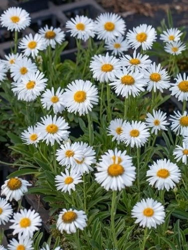 Альба - розетка компактная высотой 20-40 см. Цветы белые с жёлтым центром. Цветение обильное. Идеально подходит для альпийской горки. -