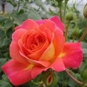 Розы у сорта выразительные, переливы ярких оттенков часто сравнивают с пылающим закатом или огненными искрами.