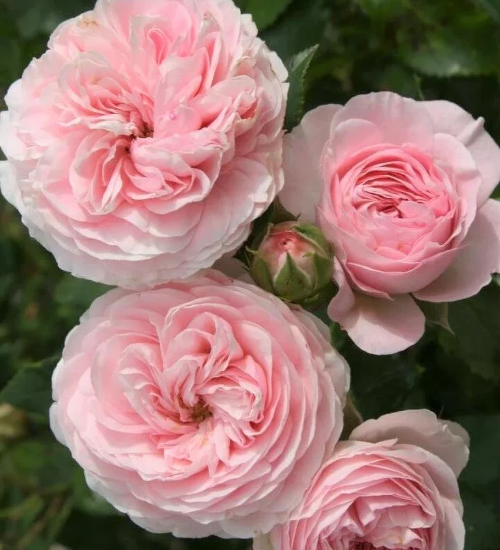 Небольшие плотно набитые (до 75 лепестков) цветки старинной квартированной формы, цвет - розовый, с переходом в светло-розовый и розово-кремовый у крайних лепестков. Куст густой, хорошо ветвится. Листва темно-зеленая, глянцевая.
