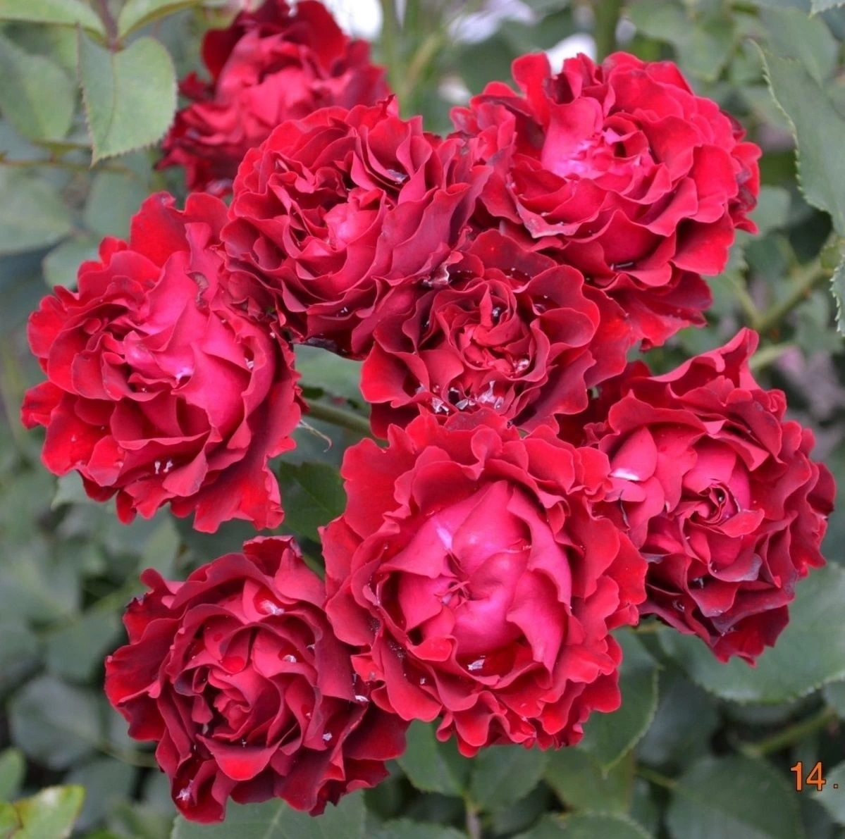 Основной цвет розы – красный. Но лепестки могут иметь и более насыщенный оттенок, который будет зависеть от периода цветения. Полностью вызревший бутон имеет бордово-красный цвет с черным бархатным налетом. Обычно затемнения лучше всего заметны по краям. На изнаночной стороне лепестка (особенно в солнечную погоду) можно заметить небольшие золотистые искры-прожилки.