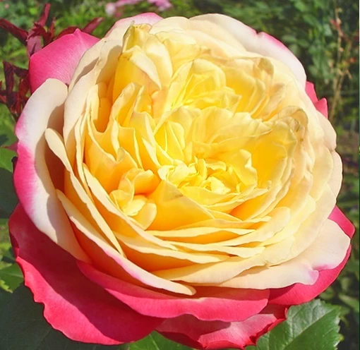 Высота 110-120 см. Цветок 12-14 см, густомахровый, до 60 леп., сливочно-желтого цвета с ярко-розовыми (до красного) наружними лепестками. Аромат интенсивный. Цветет по 1-3 на длинном прочном цветоносе. Отличная, необычная срезка. Устойчив к болезням и дождю.