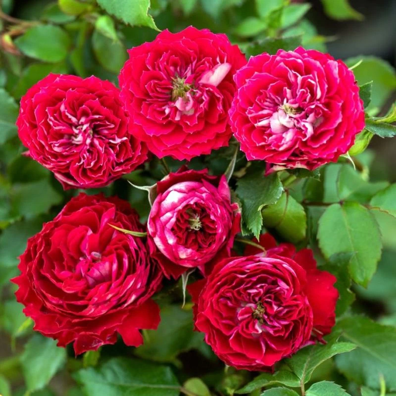 Невысокий компактный хорошо облиственный куст до глубокой осени будет радовать вас обильным цветением. Цветы для миниатюрных роз крупные (до 6 см.), старинной формы, густомахровые. Их цвет можно описать, как насыщенно красный, но с серебристой обратной стороной лепестков и белым глазком в центре. Используется для бордюров, рокариев, балконов, низких штамбов и горшечной культуры