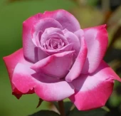 Бутоны окрашены в серебристо-лавандовую окраску, а края раскрывающихся лепестков, имеют слегка красную кайму. По мере распускания, кайма становится более широкой и приобретает насыщенный малиновый оттенок, и только центральные лепестки не сменяют свою лавандовую окраску. Бутоны крупные, чашевидной формы, с приятным ароматом. В основном появляются одиночно. Стебли густо покрыты шипами, листва имеет нежно-изумрудную окраску. Куст прямостоячий, со средней ветвистостью стеблей. Из-за своей компактности и яркой расцветки может служить украшением среди цветов на клумбе, а также и при одиночной высадке сорта на участке.