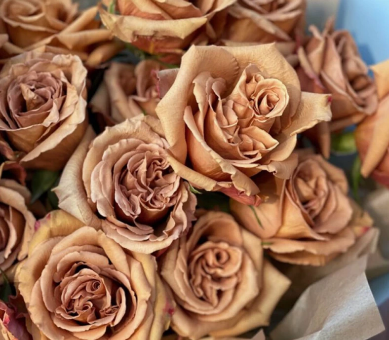 Срезочный сорт, который обладает редким и необыкновенным окрасом. Бутоны классической формы, раскрываются в густомахровые цветки кофейно-карамельного цвета. Раскрываются очень медленно, в течении трех недель. Побеги зеленые, листья темно-зеленые. Цветение обильное, непрерывное. Сорт устойчив к большинству болезней и вредителей. Подходит для срезки.