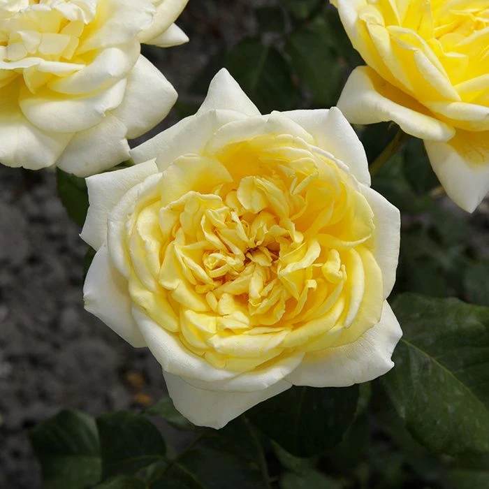Этот великолепный сорт - одна из самых популярных роз. Бутоны окрашены в персиковые оттенки, раскрываются в чашевидные махровые цветы, насыщенно-желтой окраски. Появляются в кистях, аромат средний или насыщенный, с нотками чайной розы. Обильно цветет ранним летом, затем следуют волны умеренного цветения. Побеги длинные, дуговидные, листва темно-зеленая, блестящая. Куст сильнорослый, прямостоячий, высотой 120-150 см. Сорт отличается высокой морозостойкостью и устойчивостью к заболеваниям.