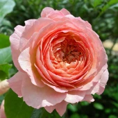 Великолепный сорт с пышным цветением. Сорт повторноцветущий. Цветки отличаются своими сложными цветовыми переливами, варьирующимися от нежно-розовых до персиковых оттенков. Особенностью этой розы является её яркий и насыщенный аромат, в котором переплетаются ноты чая и фруктов, что делает данный сорт особенно привлекательной для любителей ароматных сортов.