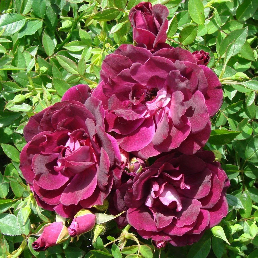 Притягательная расцветка и невероятно обильное и продолжительное цветение. Куст высотой 70-150 см, компактный и аккуратный. Листья среднего размера, зелёные, полуглянцевые. Цветы в диаметре 7-8 см, чашевидные, махровые, бархатистые, густо-сливовые или бордово-фиолетовые с серебристо-сиреневой изнанкой. Аромат приятный, умеренный, с легкими нотками гвоздики.
