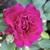 Роза имеет крупные цветки диаметром 11-12 см, пурпурно-фиолетового цвета, которые обладают яркой насыщенностью, формируются в соцветия от 3-5 шт. Куст высотой 90 см компактный и прямостоячий, что делает его удобным для выращивания даже в ограниченном пространстве. Листья темно-зеленые, маленькие и средние по размеру, правильной овальной формы, гладкие на поверхности. Аромат у розы сладкий с нотками цитруса.