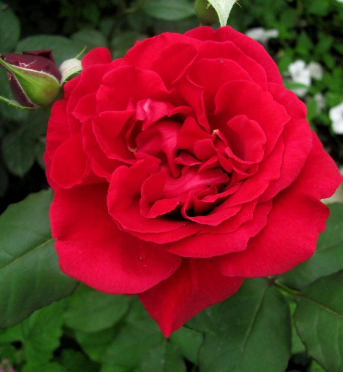 Прямостоячий ветвистый куст высотой в 100-120 см обладает светло-зелеными матовыми листьями. В период цветения его украшают яркие красные цветы старинной формы. Они крупные, диаметром в 10-12 см, густомахровые и пышные. Бутоны формируют малоцветковые соцветия, собираясь по 3-5 штук. Цветки источают приятный аромат малины. Цветение розы длительное и обильное с июня по октябрь. Розы Дино де Лаурентис используют для срезки, а также высаживают в одиночных и групповых посадках.