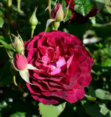 Роза высокоустойчива к болезням и дождю, выносит жару. Цветение пышное, длительное и повторное. Цветы диаметром 5-8 см, махровые, бархатистые, насыщенно-пурпурные с нежно-розовым реверсом, в кистях до 5-7 шт. Куст высотой 100-150 см сильноветвистый. Листва зеленая глянцевая устойчива к болезням. Аромат сильный, приятный.