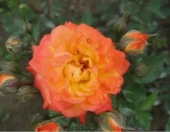 Кусты у розы высотой 30-35 см, слабораскидистые, с прочными побегами. Листья темно-зеленые, кожистые, блестящие. Бутоны заостренно-овальные. Цветки оранжево-желтые, до абрикосово-желтых, чашевидные, диаметром 3-5 см. Цветение обильное. Устойчива к грибным заболеваниям. Может выращиваться как горшечная культура. Зимостойкая.