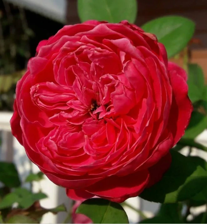 Сорт привлекает внимание своими яркими густомахровыми красно-малиновыми цветами с бордовым оттенком. Цветение продолжительное, обильное, с легким ароматом. Подходит для срезки, долго сохраняет свежесть, не осыпаясь. Формирует сильный прочный куст с большим количеством светло-зеленых глянцевых листьев. Имеет среднюю устойчивость к дождю и солнечным ожогам, но очень высокий иммунитет к мучнистой росе и черной пятнистости. -