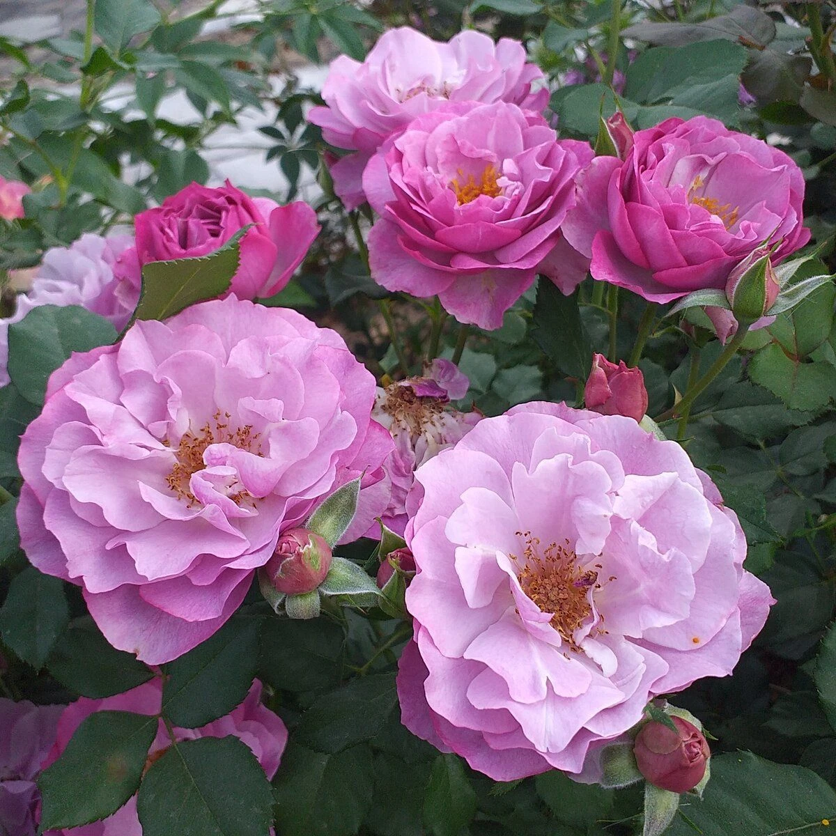 Описание: Цветки полумахровые, с волнистыми лепестками пурпурно-розовой окраски (интенсивность окраски зависит от климатических условий: в холодную погоду цвет темнее), по форме напоминают камелии, в полном роспуске раскрывают серединки. Аромат очень насыщенный, с цитрусовыми нотками. Куст высокий, сильный, прямостоячий, формирующий большое количество цветоносов. Цветение: повторное, обильное в течение всего сезона. Характеризуется высокой устойчивостью к заболеваниям. -