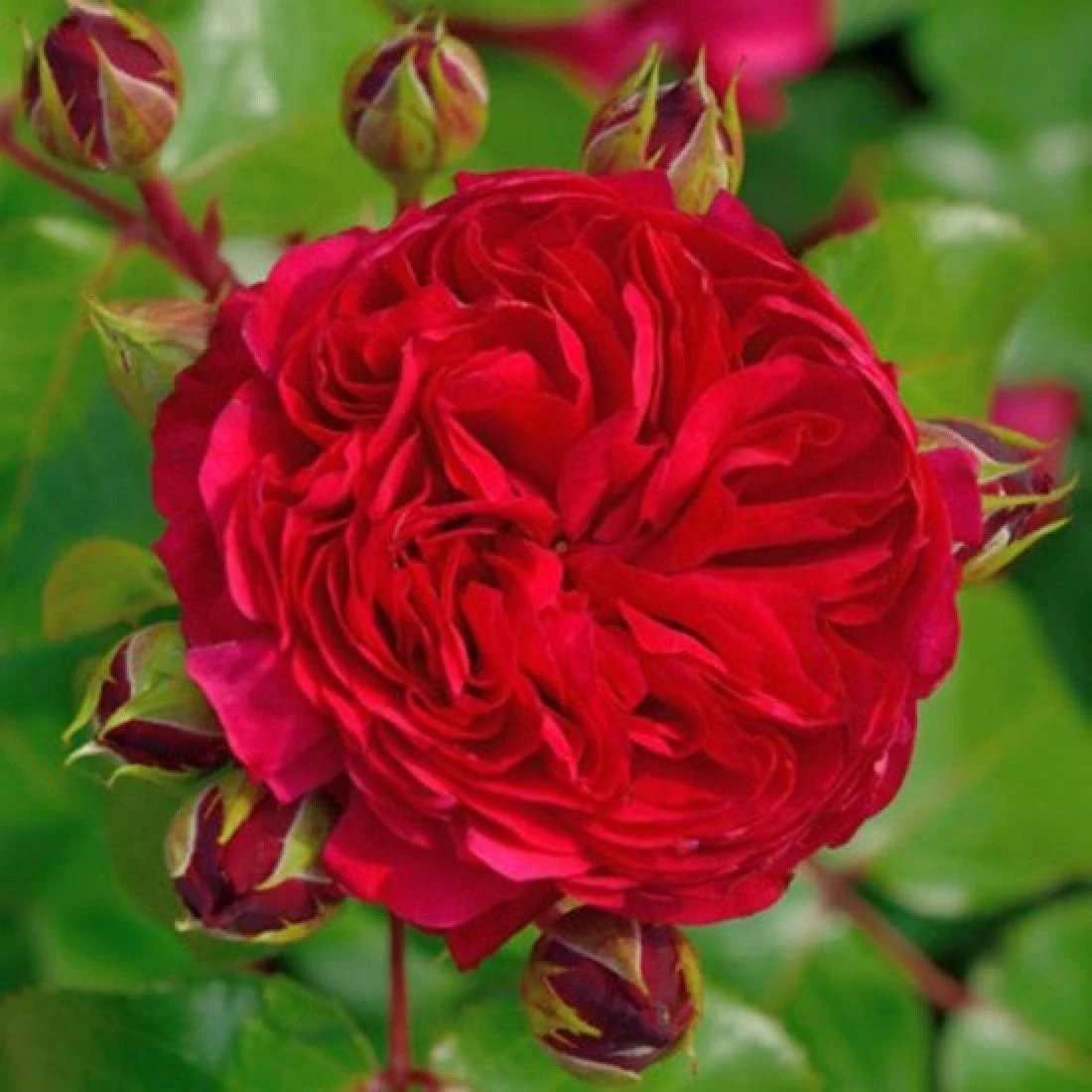 Описание: Цвет темно-красный. Легкий аромат. От 90 до 100 лепестков. Цветки средние, густомахровые, в небольших кистях, квартированной формы. Цветет в течение всего сезона. Кусты крепкие со множеством побегов заканчивающихся соцветиями от 2 до 5 шт. Хорошо переносит дожди. Устойчив к заболеваниям. -
