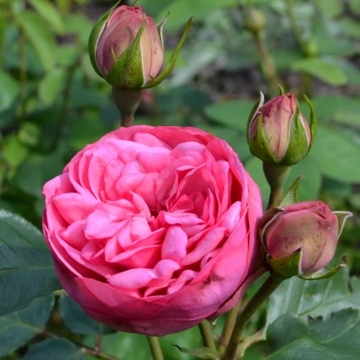 Розовый цветок диаметром 10–12 см меняет форму от шаровидной к чашевидной.