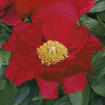 Америка - высота растения 70-80 см. Раннего срока цветения. Цветы простые чашевидные с желтым центром из густых тычинок. Лепестки ярко-красные с оттенком фуксии, шелковистые. Стебли толстые, прочные. Превосходный ландшафтный сорт. Золотая медаль АмОП, 1992 г. -