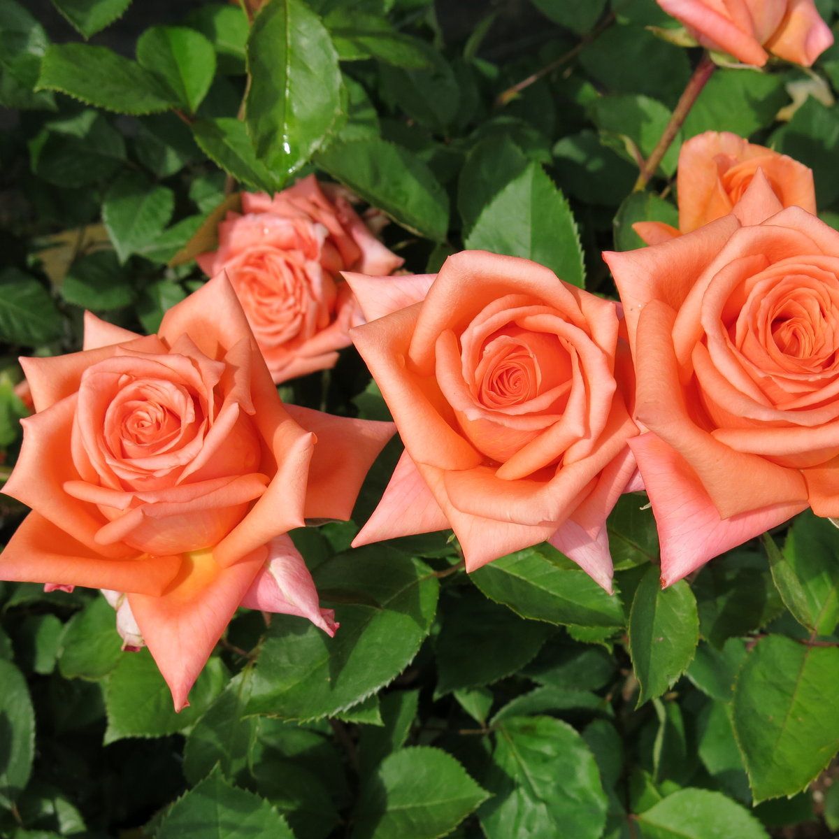 Эффектно цветущая роза с очень крупными бутонами насыщенной золотисто-медной окраски. Куст высокий, сильнорослый, во взрослом состоянии формирует большое количество цветоносов. Цветение сорта за сезон можно наблюдать 2-3 раза в зависимости от региона выращивания. В период цветения источает легкий приятный аромат. На ярком солнце края лепестков могут приобретать румяный оттенок. Подходит для срезки, сохраняет декоративность до 5 дней. Во второй половине лета требует профилактических обработок против черной пятнистости. -