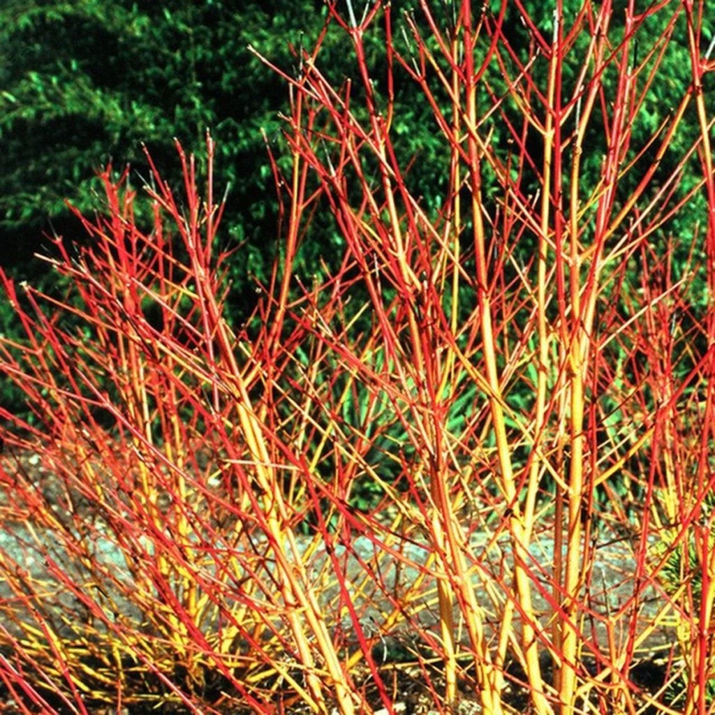 Высота и ширина куста 175см. Нижняя часть ветвей оранжевая, а верхняя ярко-красная. Молодые листья бронзовые, летом зеленые, осенью оранжевые и желтые. У этого сорта листья дольше держатся на кусте.