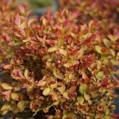 Французский сорт. Невысокий сорт. Всего 40см высотой, крона 60см. Молодые листья красные, летом золотисто зеленые.Цветет в июле-августе розовыми щитковидными соцветиями.