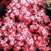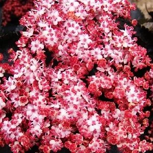Крупный быстрорастущий кустарник. Листья пурпурно-фиолетовые, резные. Цветёт в июне-июле розовыми душистыми соцветиями.