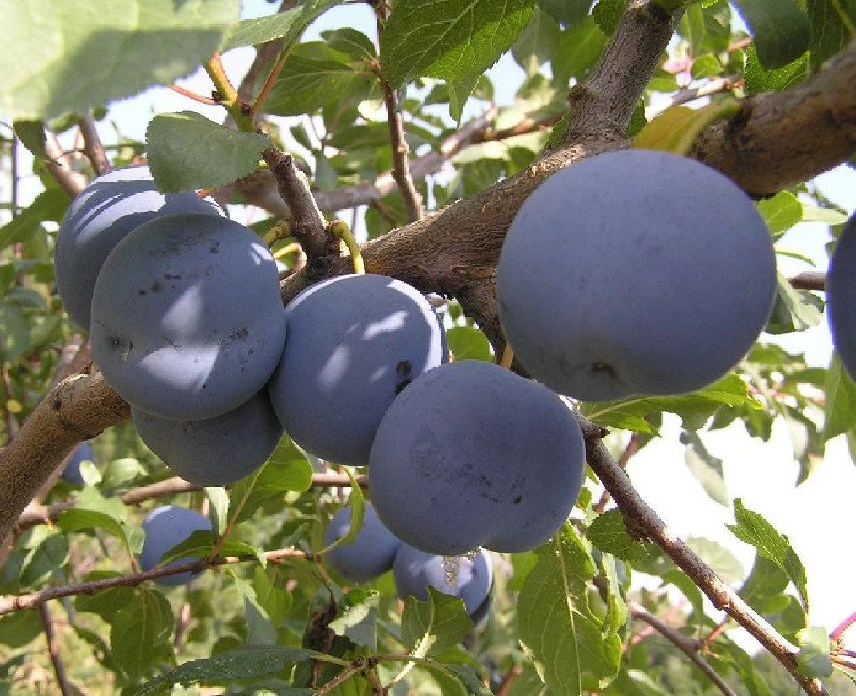 Среднего срока созревания. Дерево среднего размера, с шаровидной кроной. Поды крупные, одномерные, средней массой 34,8 г, широкоокруглой формы. Основная окраска плода зеленая, покровная - темно-фиолетовая, сплошная. Кожица грубая, голая, с сильным восковым налетом, с плода снимается с трудом. Мякоть янтарная, сочная, тонковолокнистая. Сок светло-красный. Вкус кисловато-сладкий. Дегустационная оценка - 4,5 балла. Косточка хорошо отделяется от мякоти.