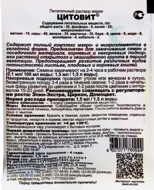 Нэст М Цитовит – высокоэффективный, быстродействующий питательный раствор микроэлементов в доступной для растений хелатной форме.