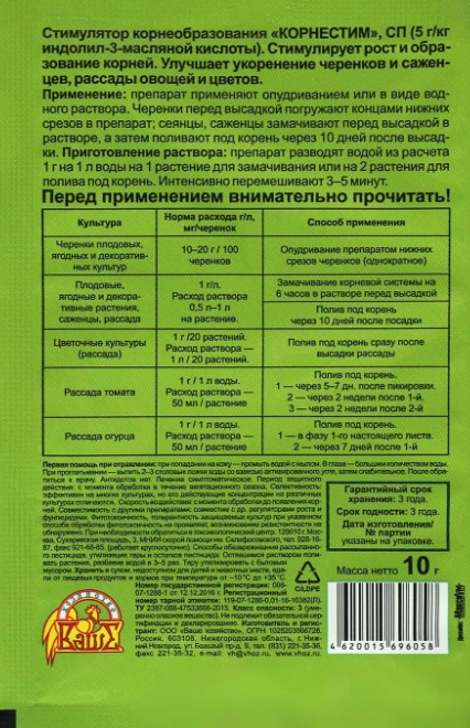Норма расхода: 1-2 г/10 черенков.