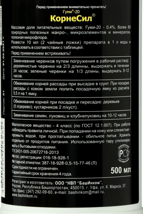 Восстанавливает корни при пикировке и высадке в грунт рассады, при пересадке деревьев, кустарников.