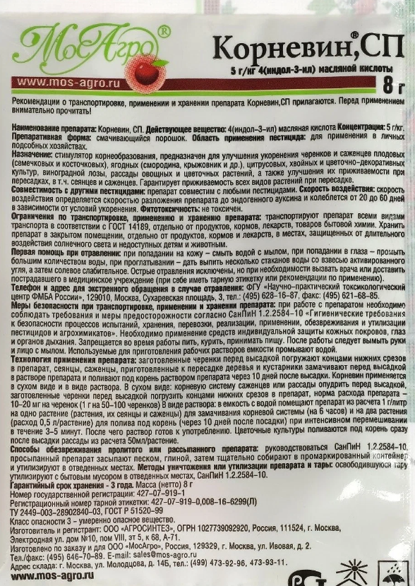 Норма расхода: 10-20 мг/черенок.