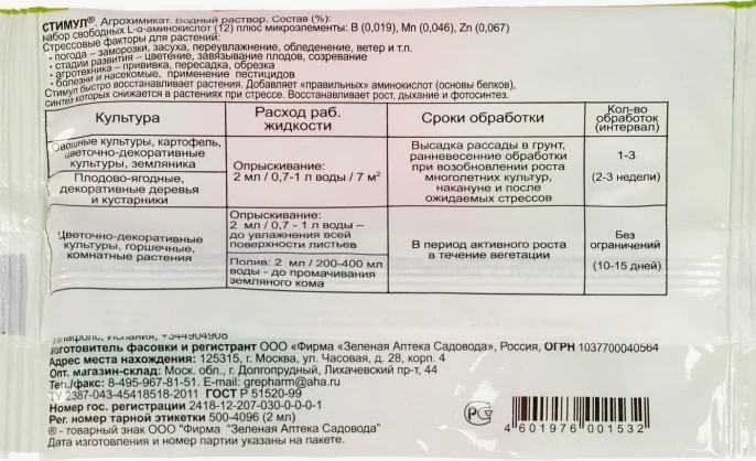Зеленая аптека Стимул – жидкое органоминеральное удобрение с микроэлементами.
