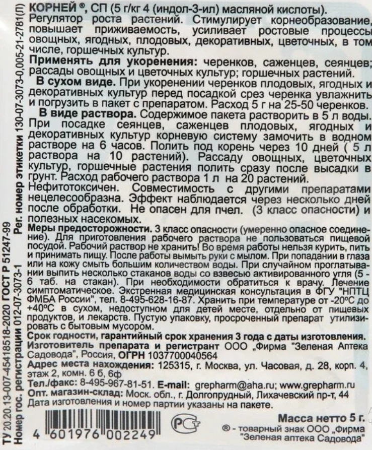 Регулятор роста Корней стимулирует корнеобразование, повышает приживаемость саженцев, рассады, цветочных культур, горшечных растений.