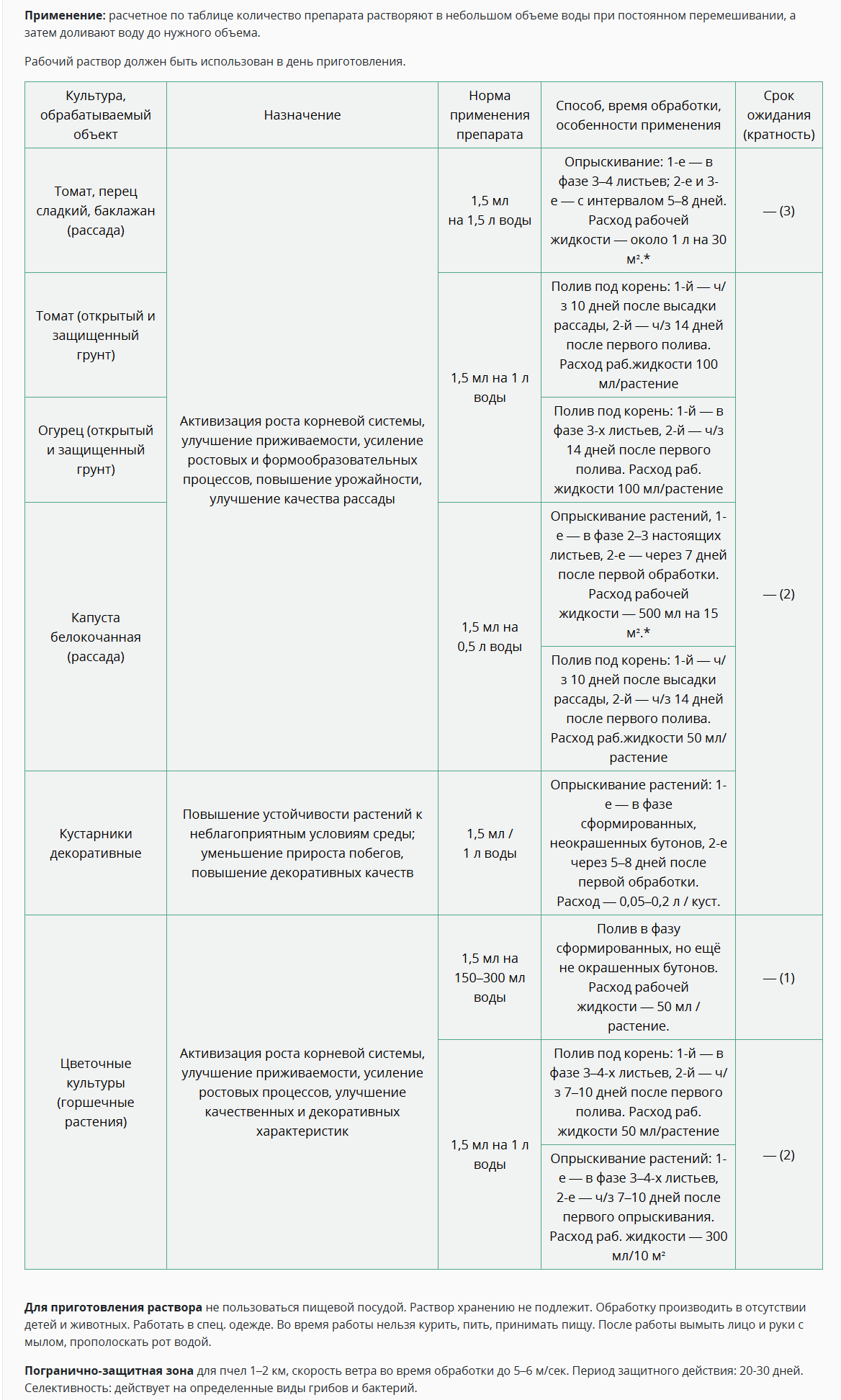 Норма расхода: 50 мл/растение.