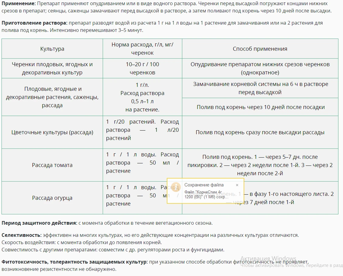 Препарат стимулирует рост и образование корней, улучшает укоренение черенков и саженцев, рассады овощей и цветов.