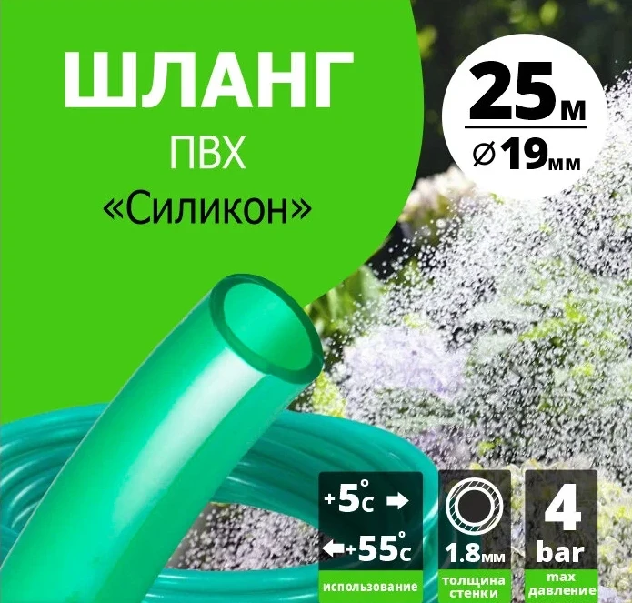 Шланг поливочный ПВХ СИЛИКОН 3/4 19мм 25м Урожайная сотка