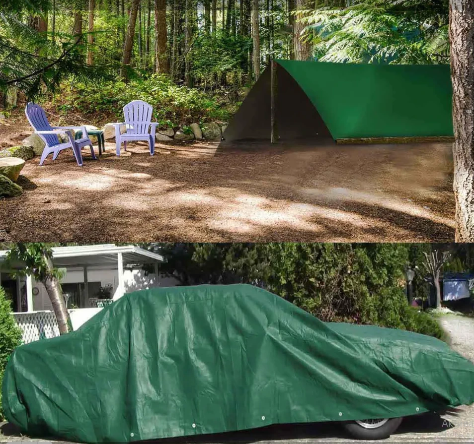 Тент Тарпаулин изготовлен из сверхпрочной полиэтиленовой пленки, ламинированной водоустойчивым покрытием и защитным слоем от УФ-излучений.