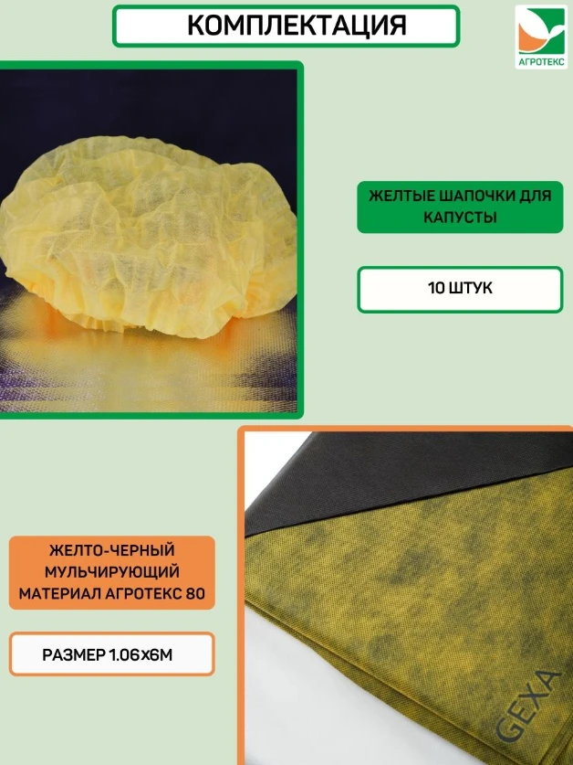 Укрывной материал Комплект для капусты желто-черный 80 1,06*6м+шапочка 10шт (ГексаУрал)***