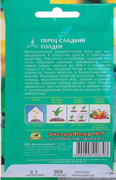 Количество товара в упаковке 10 ШтрихКод 4690698006703 Вкус Сладкий Комнатная культура Нет Не в реестре Нет Срок созревания Средний Торговая марка Евросемена Цвет плода Желтый -
