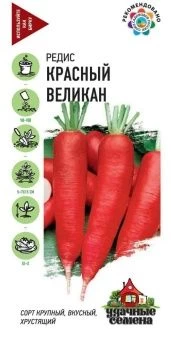 Корнеплод красный с бело-розовой поперечной бороздчатостью, длинно-цилиндрический, длиной 12-13 см, диаметром 2,5-3,5 см, массой до 300 г.