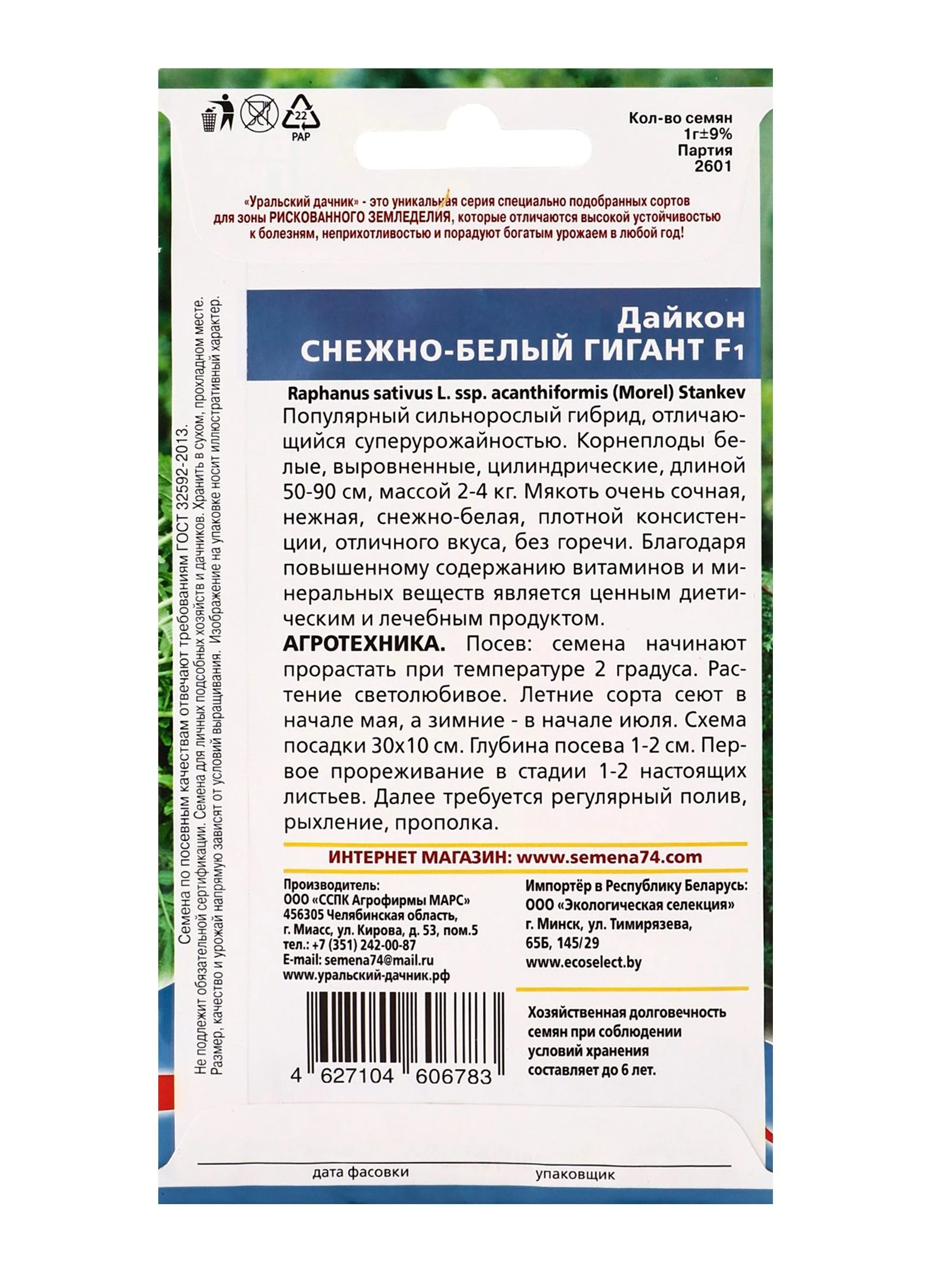 Количество товара в упаковке 10 ШтрихКод 4627104606783 Не в реестре Нет Торговая марка Уральский дачник -
